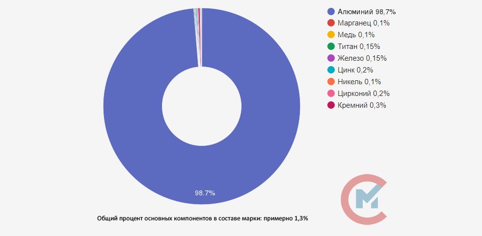 • Медь (Cu) 4,5-5,3%